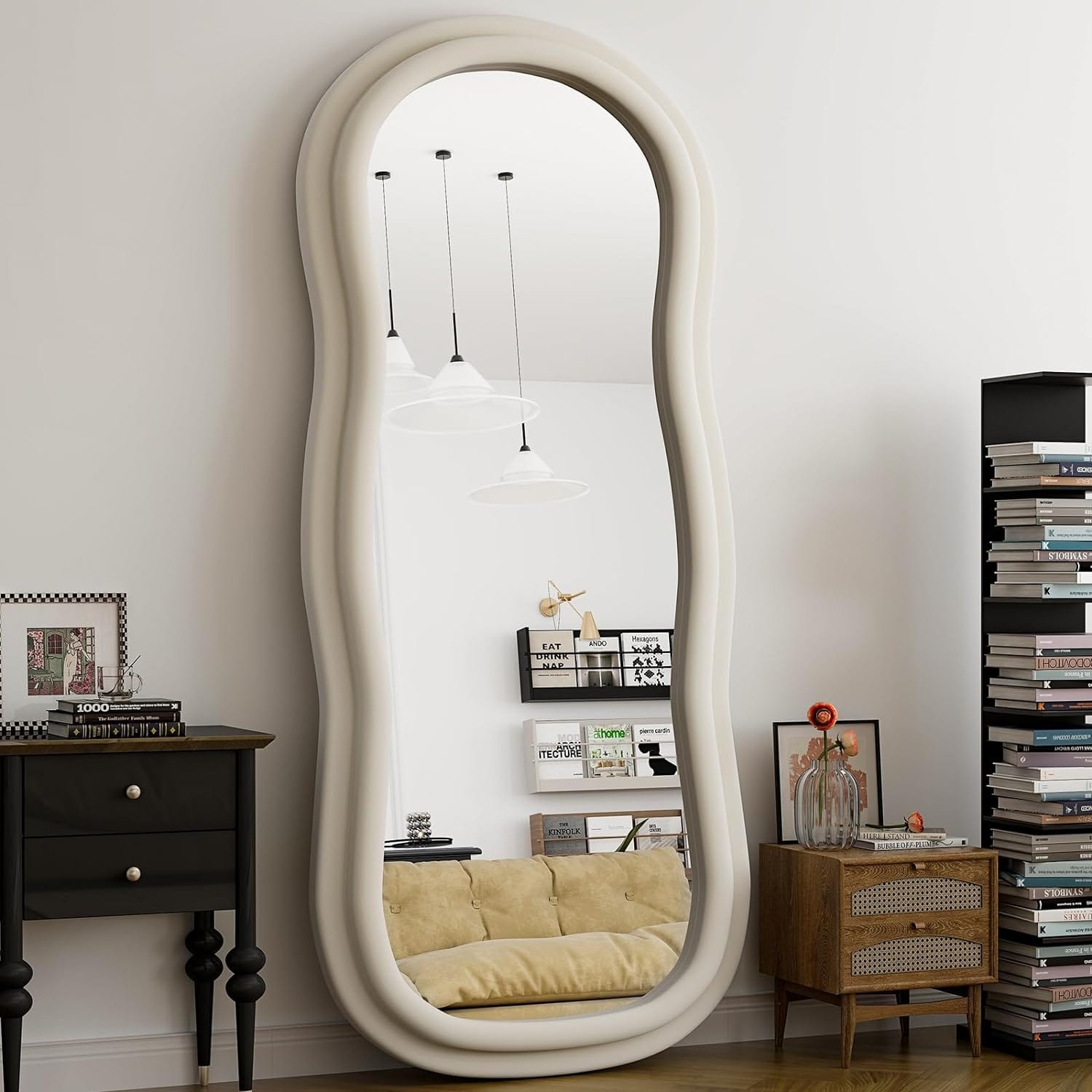 - Irregular Full-Length Mirror (under $75) — lean it, don't hang it; reflects light and opens up the room