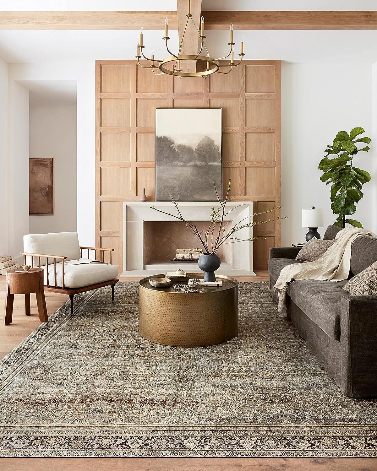 - Lolo Rug in Olive/Charcoal — easy to clean, holds up well, not boring